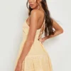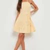 BOOHOO Woven Crinkle Gingham Strappy Smock Dress