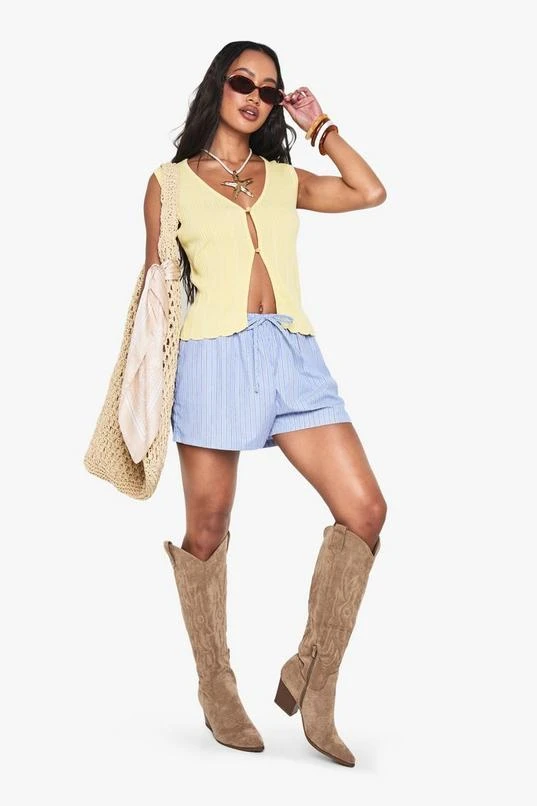 A versatile day-to-night option, new season shorts aren’t all about showing some leg – think mid-length culottes and borrowed-from-the-boy longline styles for a more conservative take on the cropped length. But flesh-baring styles are still big for nights out, with shouty sequin shorts statement and denim hotpants easy to wear for cool-casual evenings. Dress down embellished designs with a slogan tee for added edge.