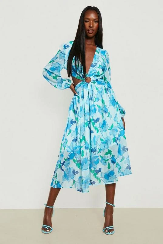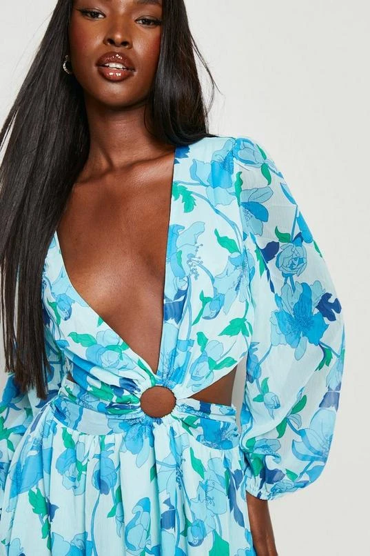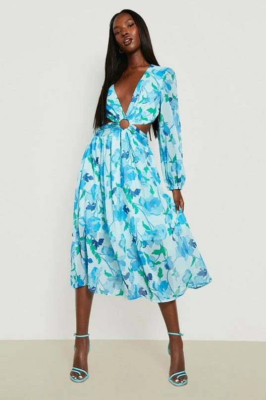 BOOHOO Woven Floral Cut Out Maxi Dress