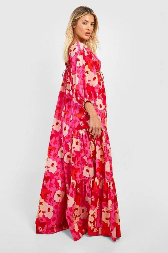 BOOHOO Woven Floral Print Puff Sleeve Maxi Dress