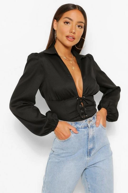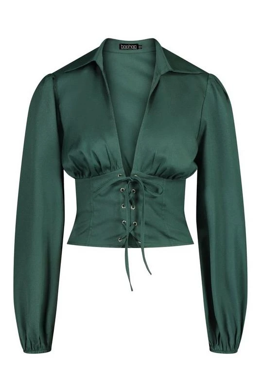 BOOHOO Woven Lace Up Corset Top