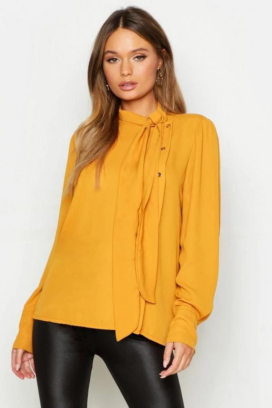 BOOHOO Woven Pussybow Button Detail Blouse