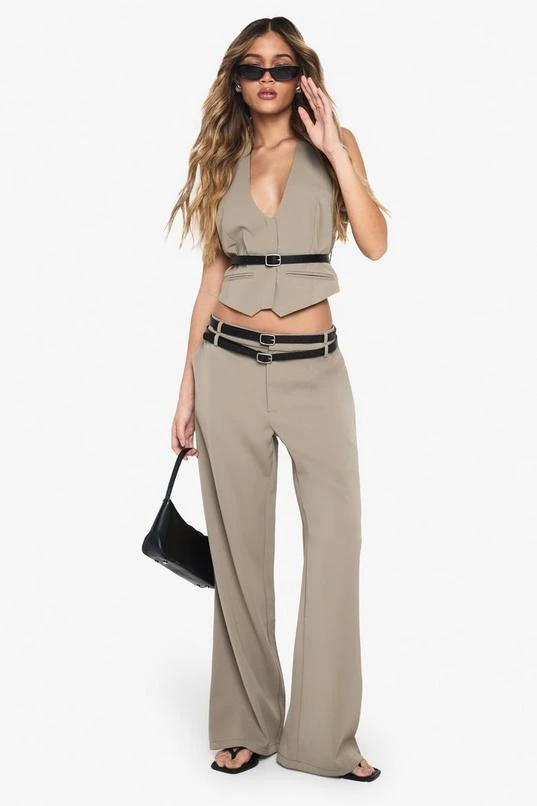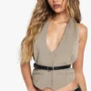 BOOHOO Woven Tailored Halterneck Belted Waistcoat