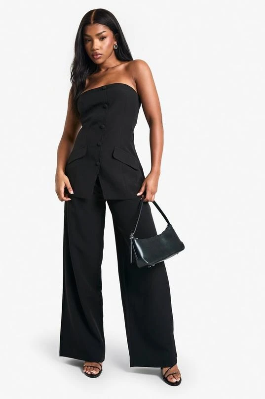 BOOHOO Woven Tailored Pleated Wide Leg Trousers