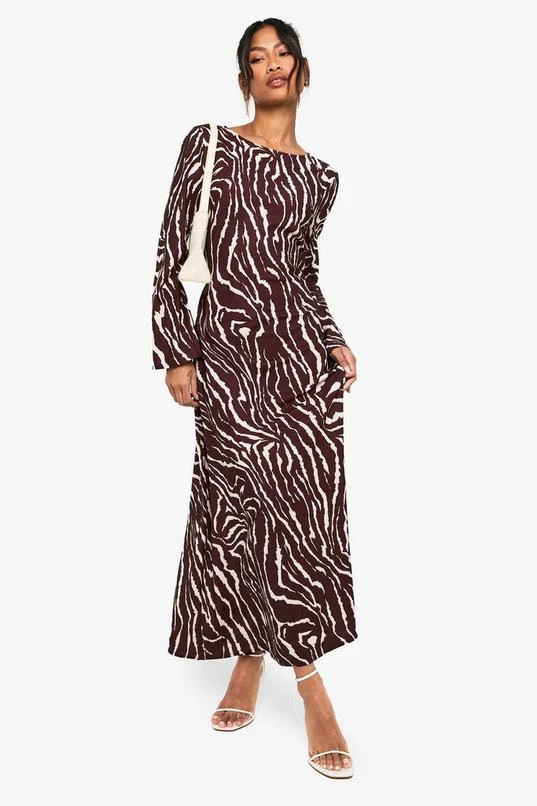 BOOHOO Zebra Flare Sleeve Maxi Dress