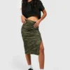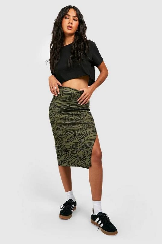 BOOHOO Zebra Print Rib Side Split Midi Skirt