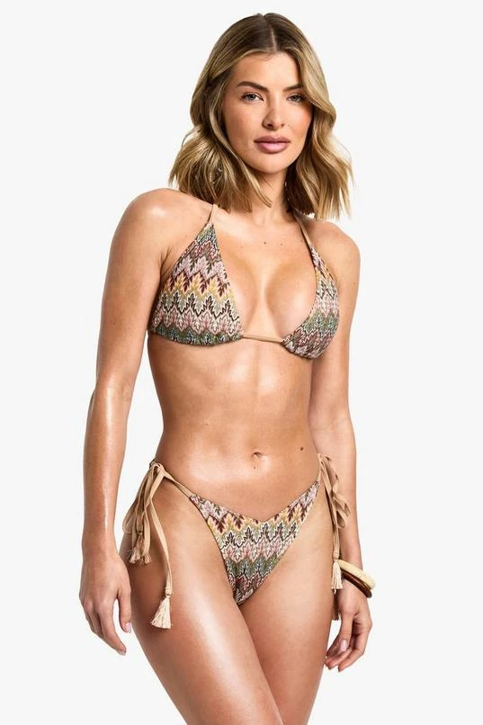BOOHOO Zig Zag Knitted Triangle Bikini Top & Tie Side Bikini Bottoms Set