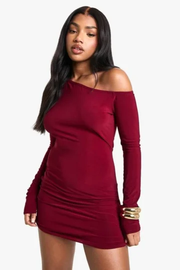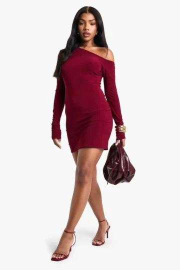 BOOHOO Asymmetric Shoulder Pad Slinky Mini Dress