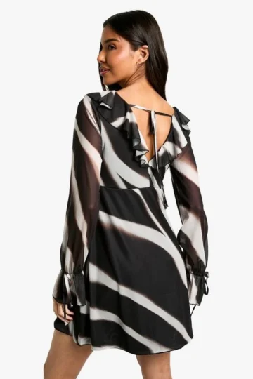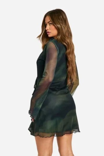 BOOHOO Abstract Mesh Flare Sleeve Mini Dress