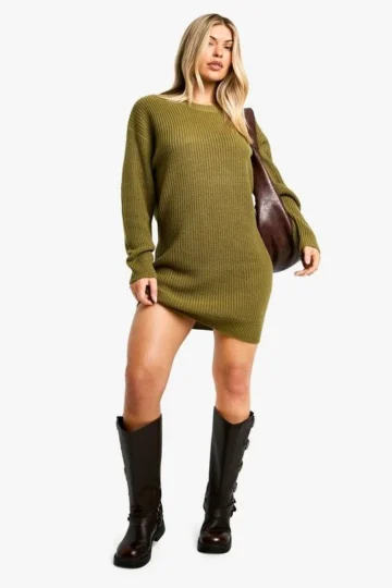 BOOHOO Basic Crew Neck Knit Mini Jumper Dress