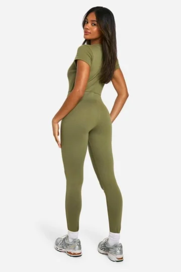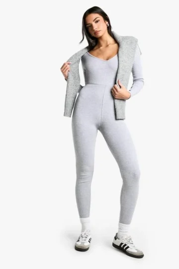 BOOHOO Basic Rib Plunge Unitard Jumpsuit