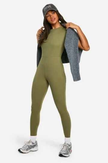 BOOHOO Basic Cap Sleeve Rib Unitard Jumpsuit