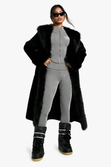 BOOHOO Après Ski Rib Zip Up Top And Fold Over Legging Set