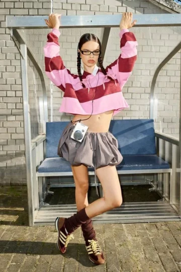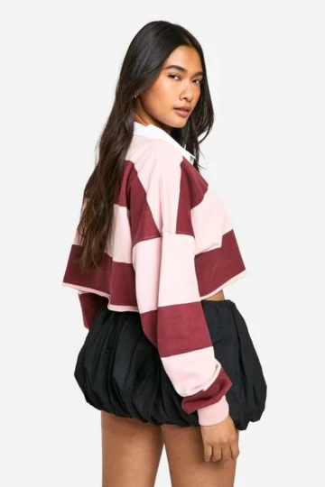 BOOHOO Stripe Boxy Crop Collared Rugby Shirt