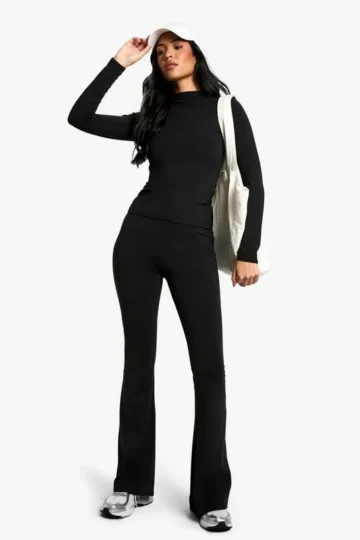 BOOHOO Tall Cotton Jersey Folded Waistband Yoga Flares