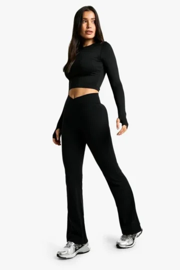 BOOHOO Tall Wrap High Waist Premium Active Flare Legging