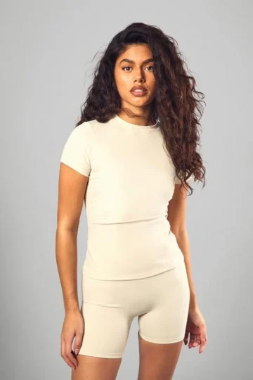 BOOHOO DSGN Studio Supersoft Peached Sculpt Short Sleeve Top