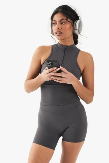 BOOHOO Dsgn Studio Sports Supersoft Seam Detail Padded Halterneck Top