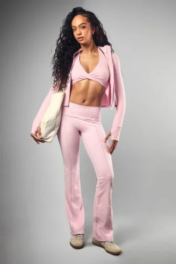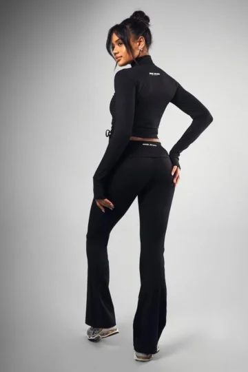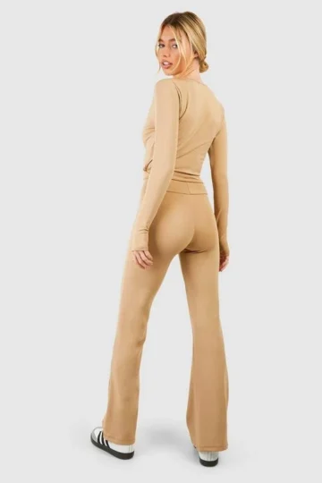 BOOHOO Fold Over Waist Woven Tab Flared Yoga Pants