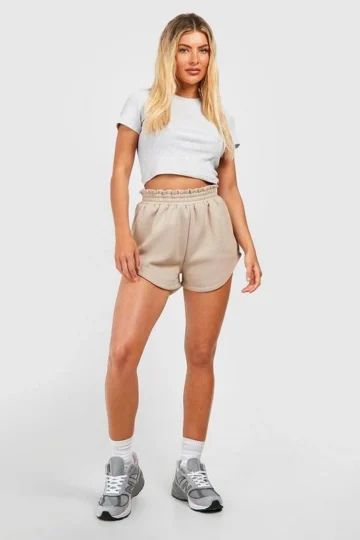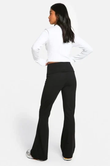 BOOHOO Petite Cotton Jersey Folded Waistband Yoga Flares