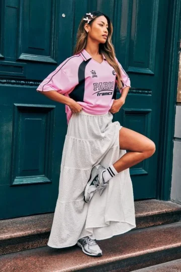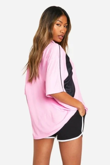 BOOHOO Paris Slogan Colour Block V Collared Football Top