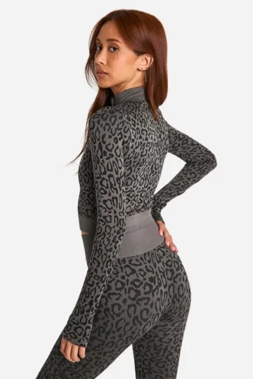 BOOHOO Leopard Print Seamless Zip Through Jacket