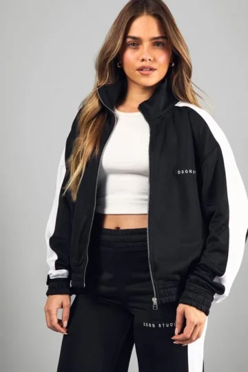 BOOHOO Petite Contrast Zip Through Funnel Neck Jacket