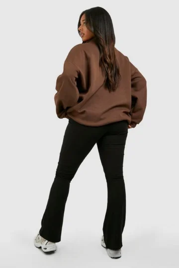 BOOHOO Plus Cotton Jersey Knit Folded Waistband Yoga Flares