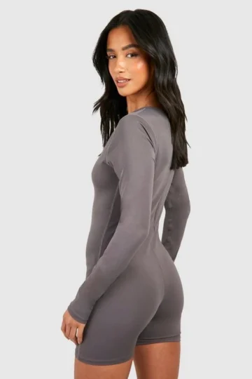 BOOHOO Petite Super Soft Peached Long Sleeve Unitard