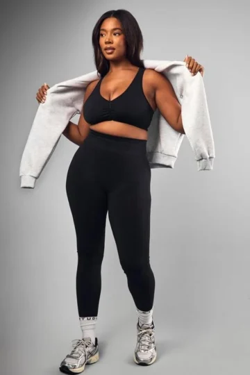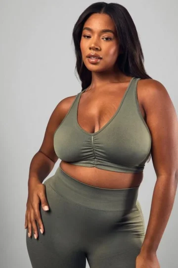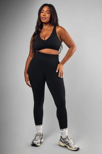 BOOHOO Plus Premium Sculpt Seamless Ruched Front Sports Bra
