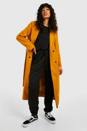 BOOHOO Longline Double Breasted Belted Coat