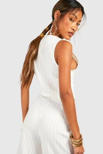 BOOHOO Linen Look Corsage Detail Tailored Vest