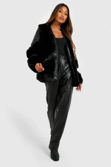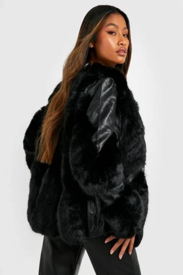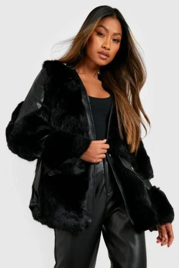 BOOHOO Luxe Faux Fur Paneled Jacket