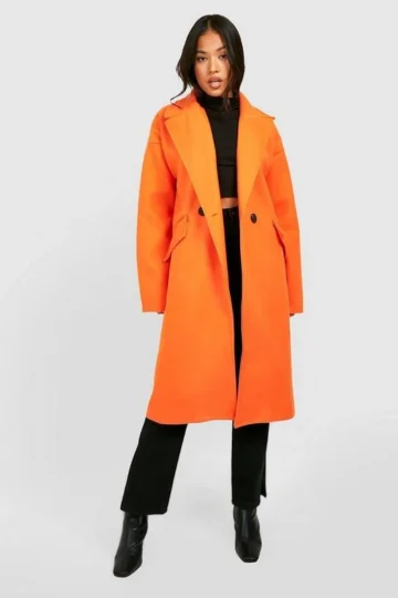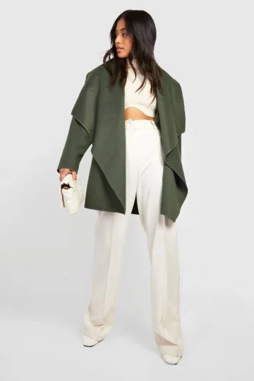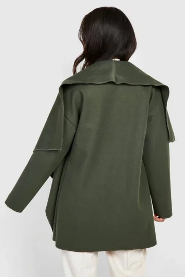 BOOHOO Petite Waterfall Drape Front Wool Look Coat