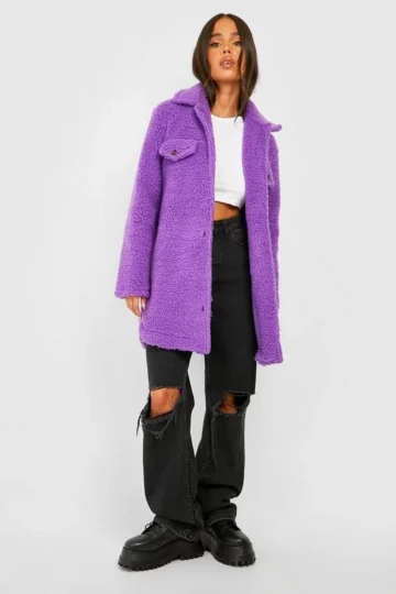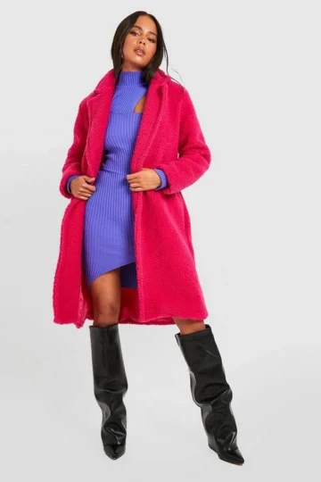BOOHOO Petite Teddy Double Breasted Car Coat