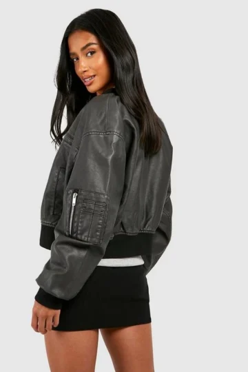 BOOHOO Petite Vintage Faux Leather Pocket Detail Bomber Jacket