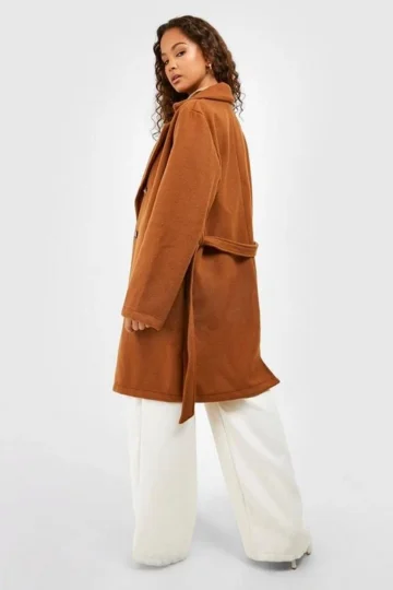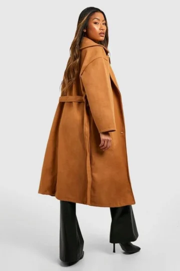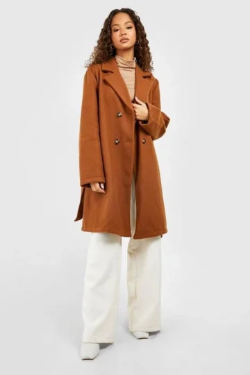 BOOHOO Belted Double Breasted Wool Look Coat
