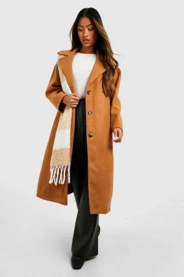 BOOHOO Belted Button Through Wool Look Coat