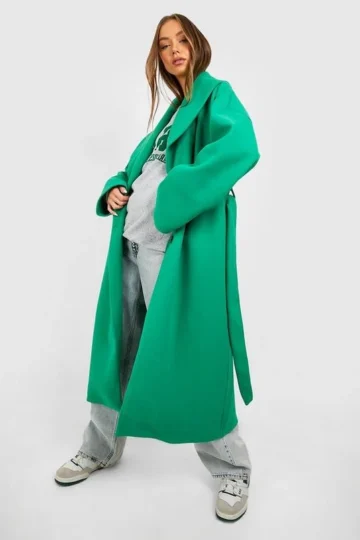 BOOHOO Belted Cowl Neck Wool Coat