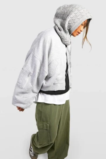 BOOHOO Batwing Fleece Oversized Bomber Jacket