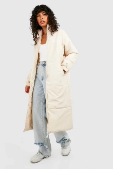 BOOHOO Sporty Embroidered Longline Puffer