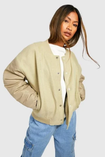 BOOHOO Sleeve Detail Bomber Jacket