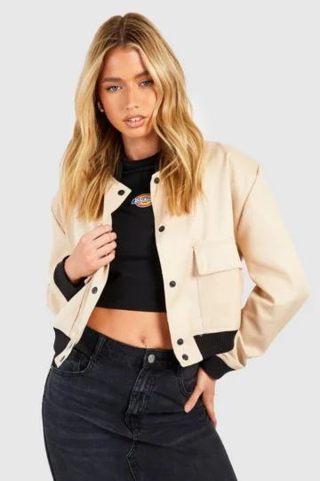 BOOHOO Shoulder Pad Detail Crop Bomber Jacket