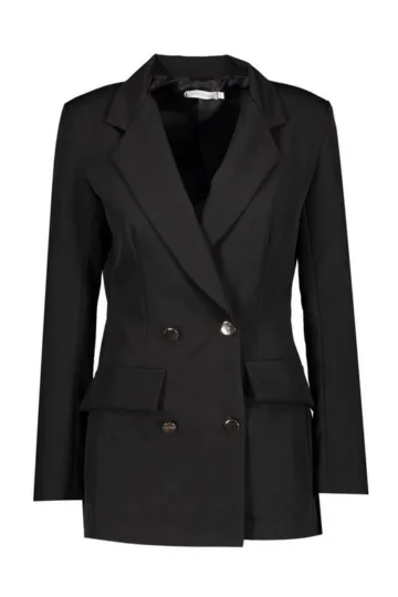 BOOHOO Double Breasted Wool Look Longline Blazer