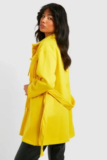 BOOHOO Fringe Detail Belted Wool Look Shacket