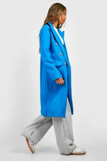 BOOHOO Gold Button Detail Double Breasted Longline Coat