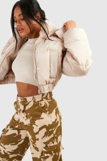 BOOHOO Hooded Crop Puffer Jacket