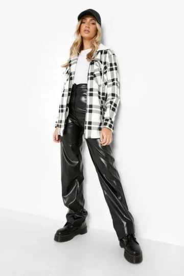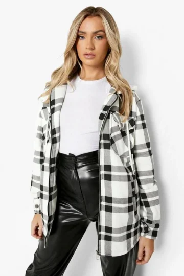 BOOHOO Hooded Zip Flannel Shacket