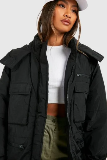 BOOHOO Hooded Pocket Detail Parka