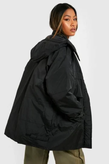 BOOHOO Hooded Quilt Detail Puffer